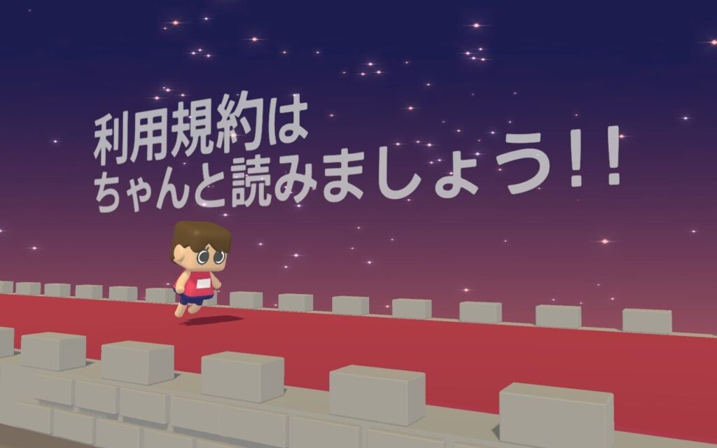 ちなみに、本作にはユニークな注意書きがある。「このゲーム内の利用規約は演出目的のフィクションです。実際の法律上の効力は一切ありません。」——当たり前といえば当たり前だが、こういった細かい配慮も好感が持てる。