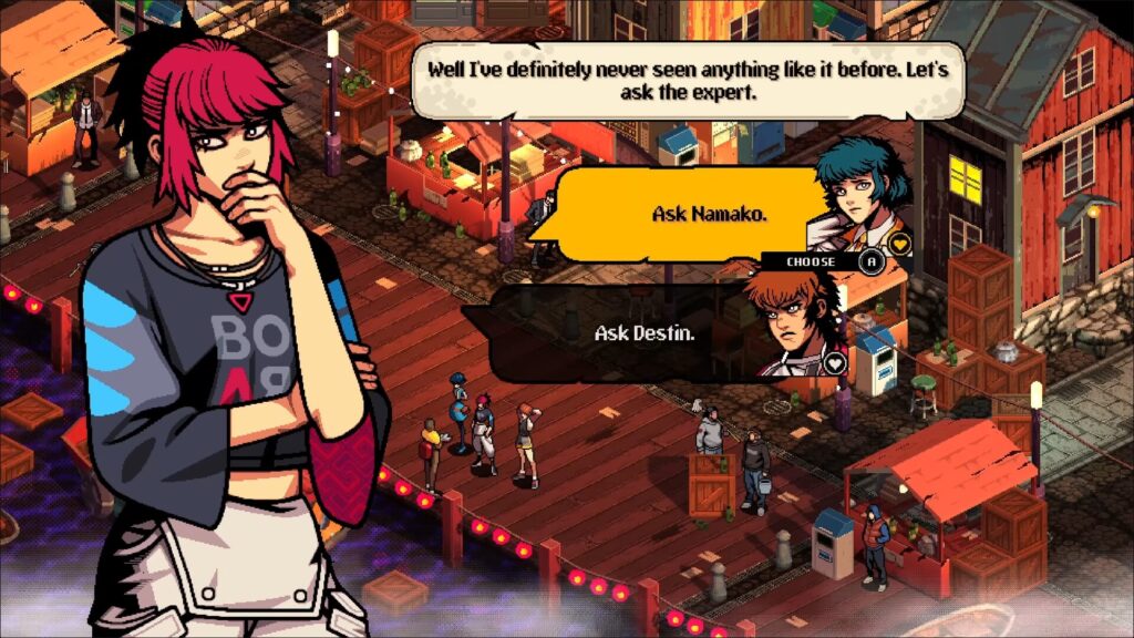 本作では、メインストーリーを進めると自動的に時間が経過し、朝・昼・夜とフェーズが切り替わる。プレイヤーは島のさまざまな場所を自由に探索でき、NPCとの会話やサイドクエストをこなすことで仲間との親密度を上げられる。