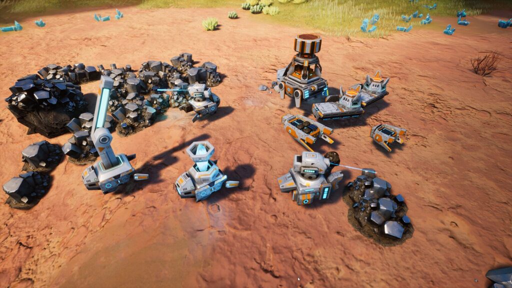 本作は単なるファクトリーゲームではない。ストラテジー要素も色濃く、プレイヤーは未知の惑星で資源を集め、基地を拡張し、時には敵対的な生命体と戦わなければならない。