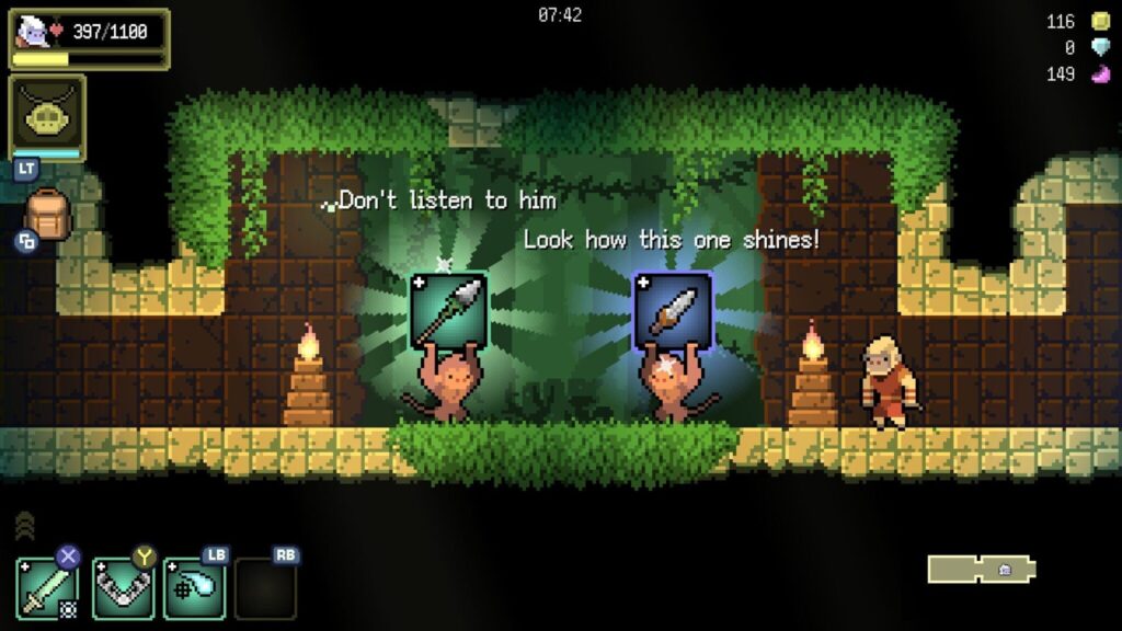 また、キャラクターの魅力も本作の大きな強みだ。主人公のサルをはじめ、登場するキャラクターたちは皆個性豊かで愛嬌がある。特にコメディ要素が随所に散りばめられており、プレイ中に思わずクスッと笑ってしまうシーンが多い。この親しみやすさが、ハードコアなローグライクとは一線を画している。