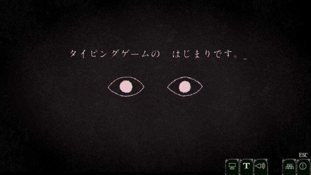 ゲームマスターを名乗る不気味な目玉の指示に従い、プレイヤーは画面に表示される文章をそのまま打ち込んでいく。最初は「言われた通りにキーを打てばいいですからね。頭を使う必要はまったくありません」という親切な(?)言葉に導かれ、単純なタイピング練習かと思いきや、やがて不穏な契約書への署名を強要される。