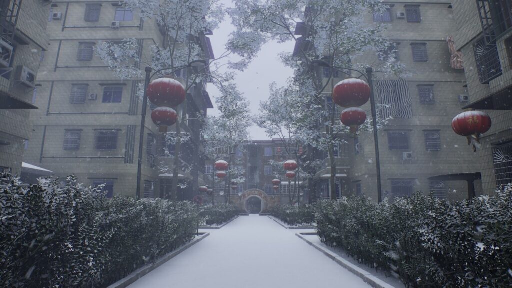 具体的には、色あせたトタン屋根の集合住宅、薄暗い校舎の廊下、古ぼけた遊園地、商店街の湿った空気感……といった、かつて中国の都市部で当たり前だった光景を、人の気配を消した状態で描き出す。そこに「リミナルスペース(liminal space)」の要素が加わることで、懐かしさと不気味さが同居する独特の雰囲気が生まれる。