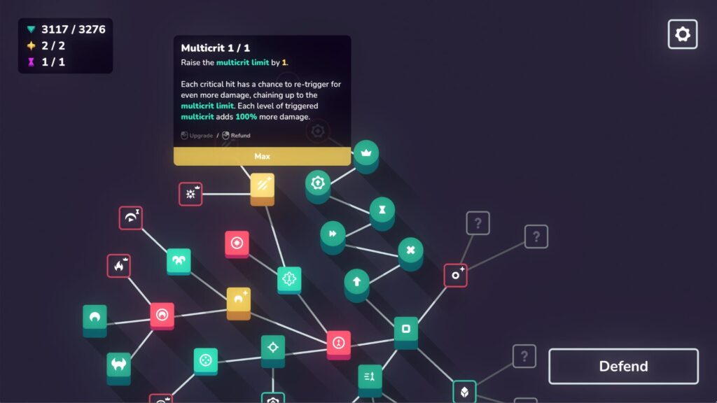 敗北してもまったく嫌な気持ちにならないのが本作の巧妙なところ。むしろ「今度はあのアップグレードを取ってみよう」「別のタワーに特化してみよう」という気持ちが湧き上がってくる。すべてのアップグレードが無料で付け替え可能という設計により、失敗を恐れずに様々な戦略を試せるのが素晴らしい。