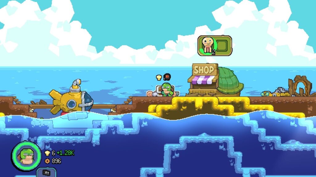 『Shelldiver』は、老齢のカメが経営する小さなクラゲ屋さんの物語だ。主人公のカメは、日々潜水艦に乗り込んで海底へ潜り、バブルガンでクラゲを捕獲しては店で販売するという、なんともほのぼのとした日常を送っている。