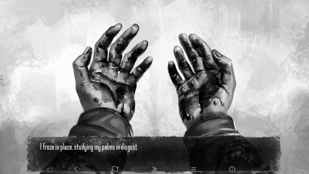 このゲームの白黒のグラフィックが実に秀逸だ。モノクロームの世界は、まるで古い写真や映画フィルムを見ているような感覚を与える。雪に覆われた村の風景、薄暗い校舎の廊下、そして不気味に枝を伸ばす森の木々——全てが絶妙なタッチで描かれ、プレイヤーを1990年代の東欧の片田舎へと引き込んでいく。